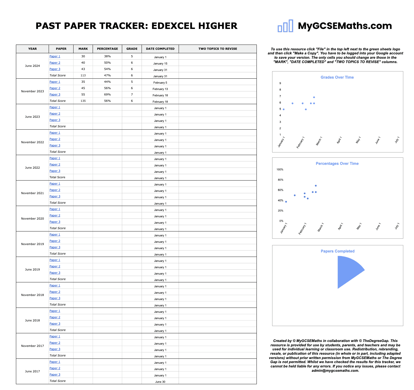Use the tracker to identify two weak topics from every paper, making your revision targeted and progress driven.